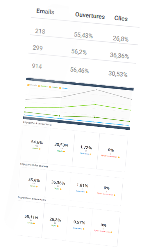 1431 emails envoyés • taux d’ouverture +55% • taux de clic +35%